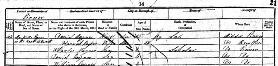 In 1851 the family are still living, according to the census, in “Mr Hill’s Farm in the road to Roxeth”, so the lane was not yet known as Rayners Lane.