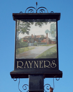 The pub sign still remains and features a rendering of the original Rayner’s farm buildings that were built for the labourers of Daniel Hill’s farm.